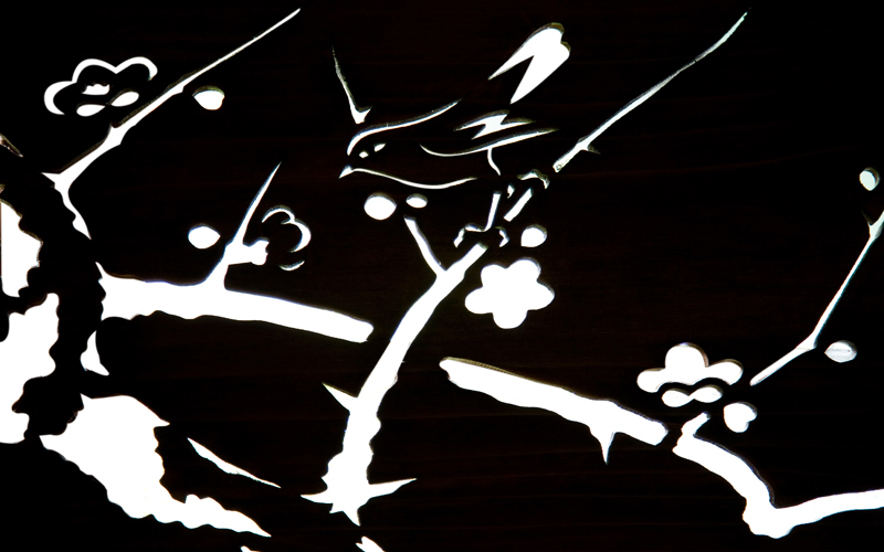 The shelf of this room has been made by smoked bamboo. The purple Melia azedarach flowers bloom in the end of May to June.