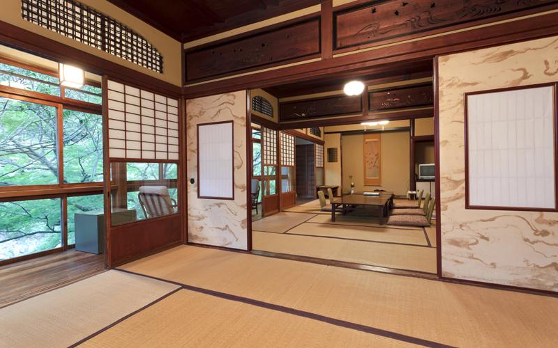 In Meiji Era, the Emperor families often stayed in this room. Furthermore, the renowned author, Yoshikawa Eiji stayed in the room to write and to spend time with his family. The room has a private bathroom.